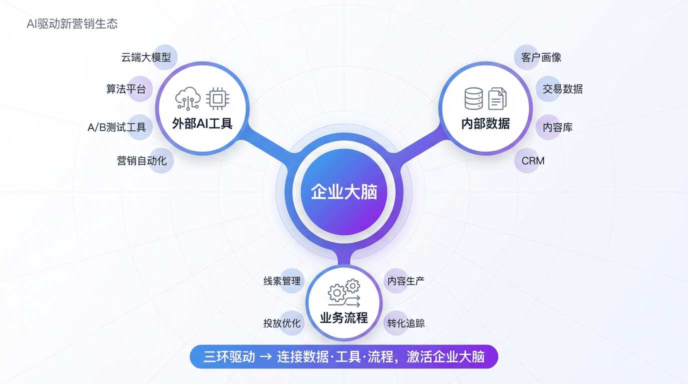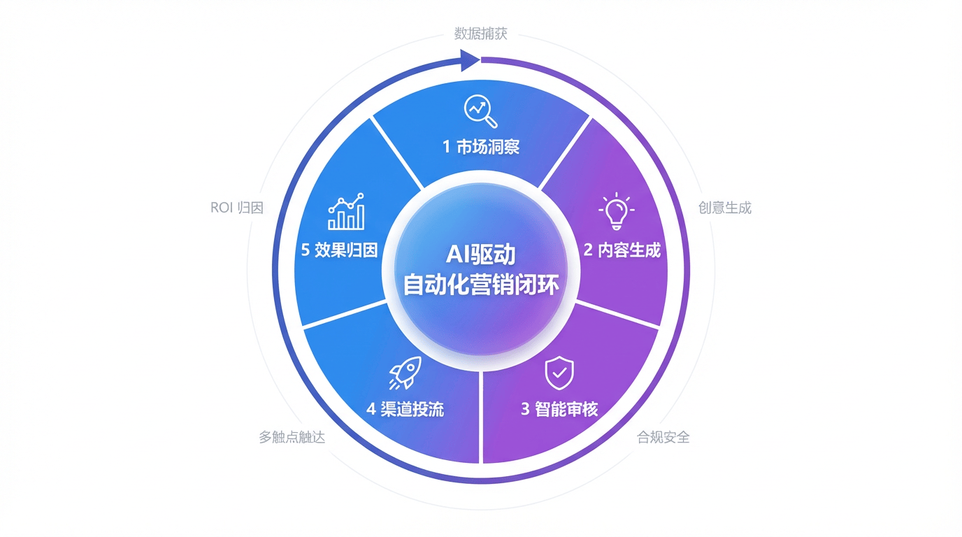 AI实现了从市场洞察—内容生成—智能审核—渠道投流—结果归因的全流程从动化。跃迁至驱动组织变化和计谋立异的计谋层。我们看到了AI赋能贸易决策的无限可能。