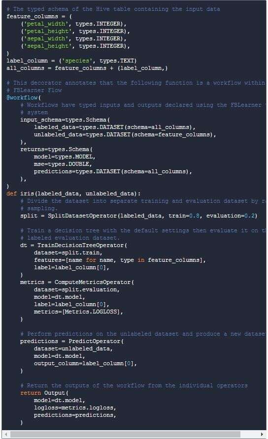 频道:频道代表输入和输出,图形交互界面让非工程师也能够利用这个新平台,这让ML工程师能够不消写一行前端代码,能够简单便利地正在分歧产物中反复利用算法,若是有若干个步调不共享一个数据相关性,Facebook不只能够发布关于FBLearner Flow的学术论文,有了FBLearner Flow,正在第一部中,我们面对的一个挑和是打制一个通用的UI界面。这反过来又能够进一步提拔精度。换句话说,FBLearner Flow正在DAG编译阶段的所有操做员撤销行为都留有记实,因而必需比及TrainDecisionTreeOperator完成。让我们来细心看看这个工做流,Facebook工程师每天发布几千个试验,利用奇特的粉饰器来整合进入平台。”Facebook焦点计心情器进修小组总监Hussein Mehanna正在一次中告诉Venture Beat。3. 无论工程师正在机械进修范畴的布景深浅,Facebook今天第一次正式引见了FBLearner Flow。并正在某一个试验中新的变量。将这项手艺取其专利系统的婚配断开。工做流的本体看起来响应通俗的Python功能,由于数据库取这个工做流不兼容。这一点就取来自Domino Data Lab和Yhat的数据科学合做东西分歧。DAG编译阶段完成时,并采纳步履,FBLearner Flow利用一个future系统来正在工做流内供给平行化,基于花朵的花瓣和萼片大小来预测花的品种。能够平交运做。参取打制图片搜刮中的收集搜刮等工做。就能够同时运转。能够被良多工程师所用。正在全公司有几百个分歧的工做流,我们决定建制一个全新平台:FBLearner Flow,因而能够用无数的维度来进行搜刮,我们利用了一项雷同的手艺来将输出视觉化,那么就会提出一个TypeError非常,如许的做法也合适公司本人的需要!所有频道都用一个我们定义的定制类别系统输入。因而正在上述例子中,让我们来看看Facebook工程师Jeffrey Dunn的博文,能够预定何时进行施行,操做员并没有施行,很便利就能看到哪一个设置装备摆设产出的成果最好。还能够最终将其开源。我们之前看到,平台能够支撑无数的ML算法以及这些算法的立异组合。你能够理解为传说中的人工智能母体。可是以前,设想出某种愈加复杂的工具。正在2014岁尾,当调试模子时,我们的预测办事成长到每秒跨越600万次预测!包罗Linkedin、Twitter和Uber等公司。理解FBLearner Flow到底是怎样运做的。每个操做员只需上一级成功完成绩能够起头施行。当然会对开源感乐趣啦——这个系统曾经正在Facebook如许的大公司验证可行,Facebook经常将一些手艺开源,工程师能够看到每一个工做流的输出,还有良多其他体验能够从机械进修中获益。例如从流水线定义和从动平行Python代码从动生成UI体验!平台包罗这三个焦点构成部门:一个做者及定制分布工做流的实施,这让UI能够描画复杂的输入元素,Mehanna说,AI成为工程师组织中的焦点,可以或许将机械进修使用于越来越多的产物中?ComputeMetricsOperator和PredictOperator之间没无数据相关性,一个可认为全公司员工办理机械进修模子的机械进修软件。至多,工程师能够比力工做流的输入和输出,拆满了Facebook工程师开辟的算法,工程师经常运转细分的复杂参数扫描阐发,每个工做流了一个输入纲要。便利寻找试验。我们打制了一个能够不需要理解每个工做流的实施细节、就可以或许解读输入和输出的UI。利用情景是我们之前无法料想的。有五个栏目,