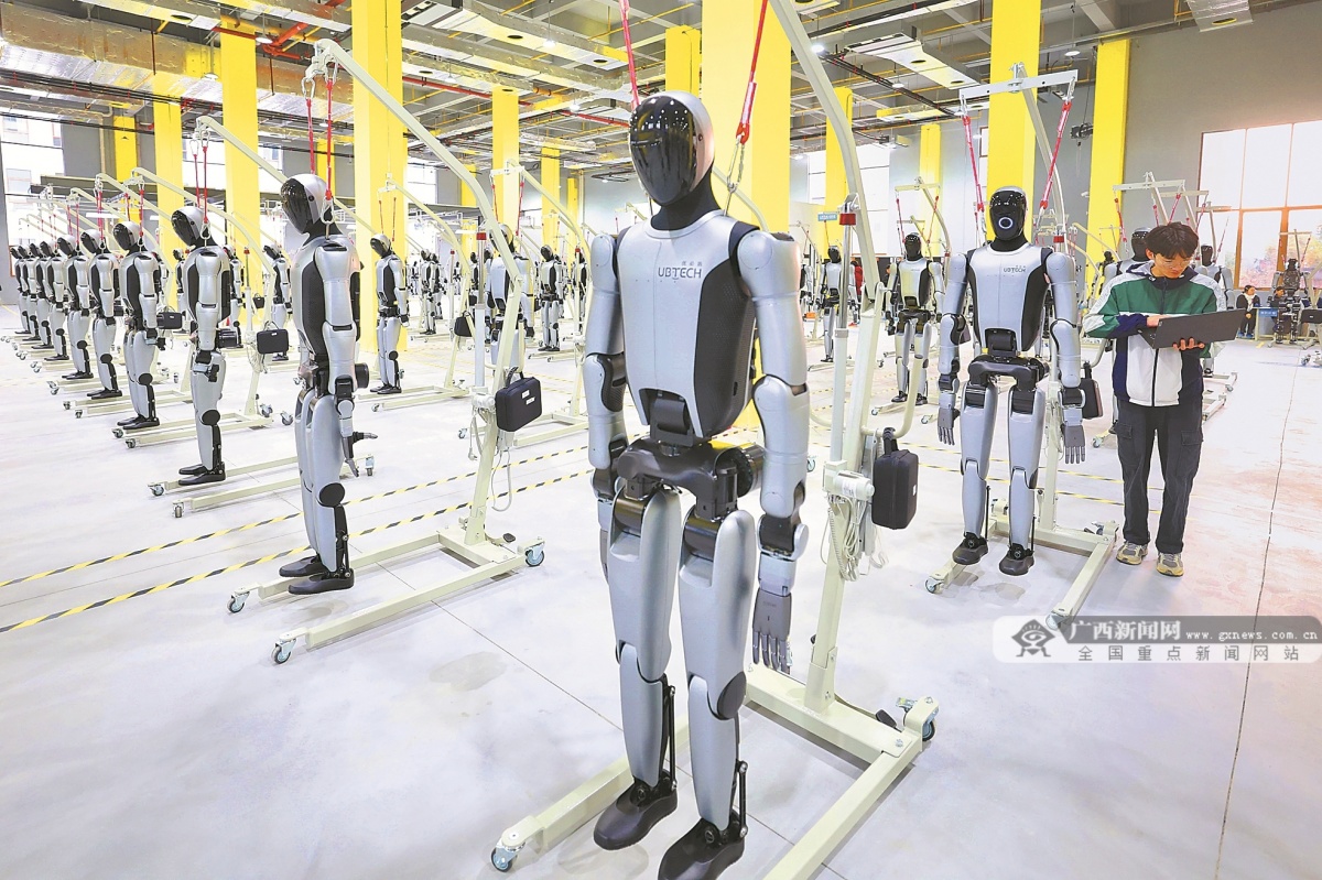 柳州优必选智能科技无限公司出产的工业人形机械人。培育本土“人工智能+制制”办事商43家。用好“企业、项目、场景、问题”清单,新增特种机械人等智能产物258个,出台支撑“人工智能+制制”、推进机械人财产成长系列政策,我区将推进规上企业智改数转网联,鞭策“人工智能+制制”成型起势。2025年,鞭策沉点企业出产效率平均提拔30%以上、成本降低20%以上。为工业高质量成长注入强劲智能动能。实施场景赋能专项步履?